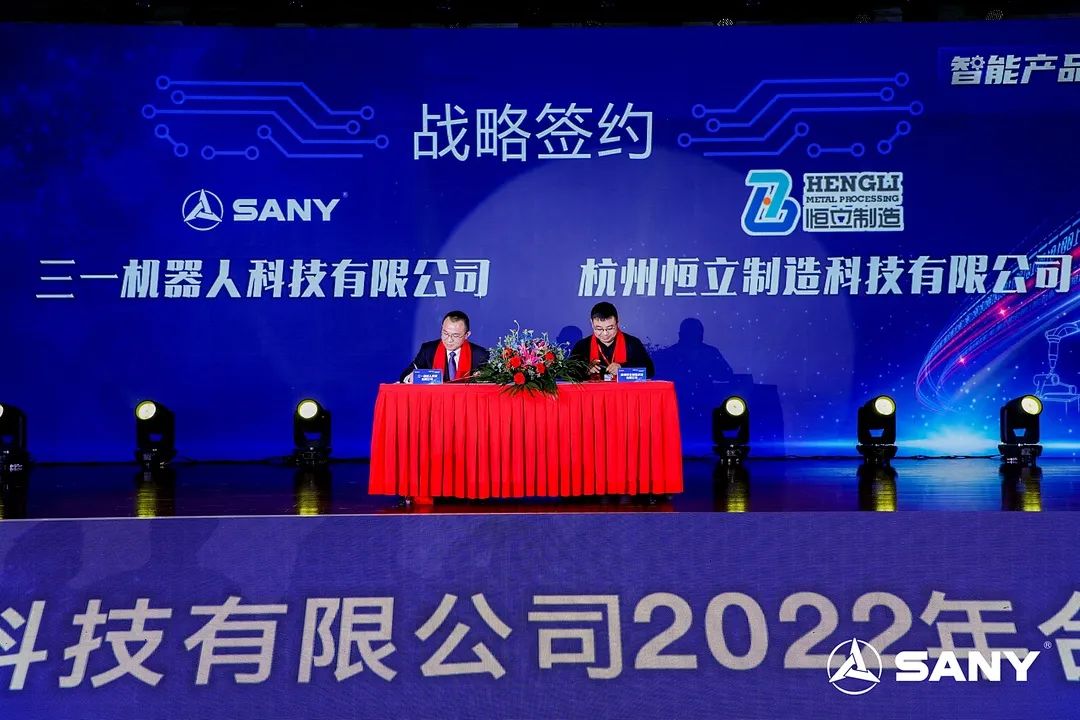 2022年1月7日,以“智能產品,引領未來”為主題的三一機器人科技有限公司2022年合作伙伴大會在湖南長沙舉行,會議上三一機器人科技有限公司與杭州恒立制造科技有限公司簽訂戰略合作協議,開啟了恒立與三一合作的新篇章。
