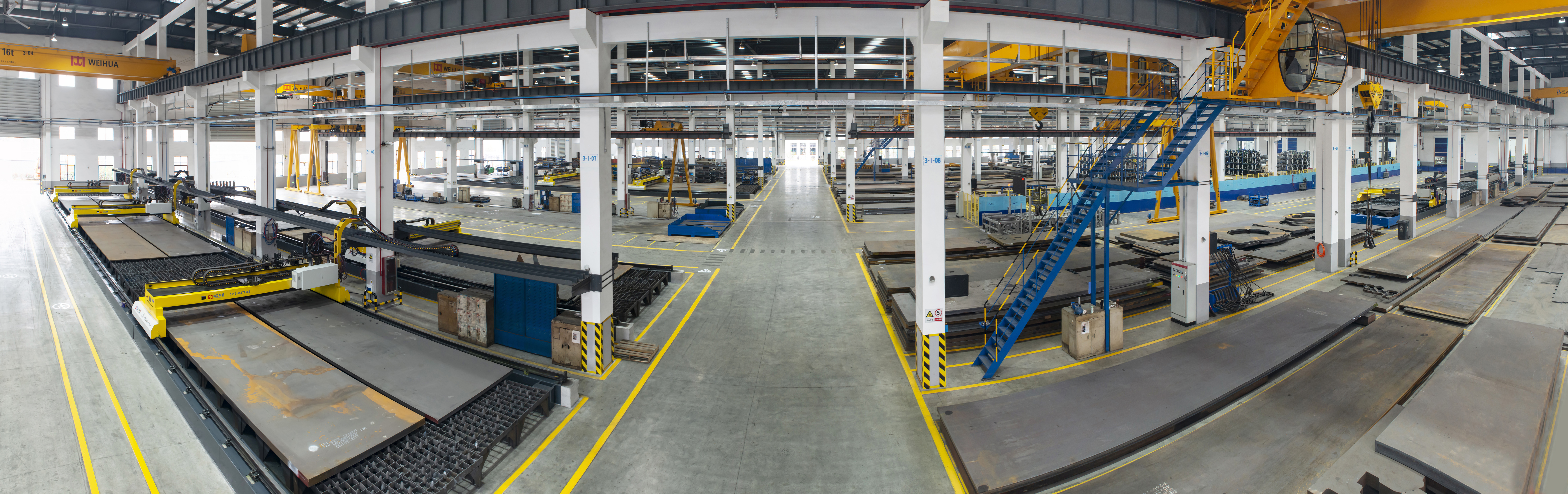 下料車間占地面積為23000平方米,擁有激光切割12臺(tái)、三維激光切割2臺(tái)、數(shù)控火焰切割10臺(tái)、小型火焰切割機(jī)數(shù)十臺(tái),員工140余人,年加工能力達(dá)30萬噸。