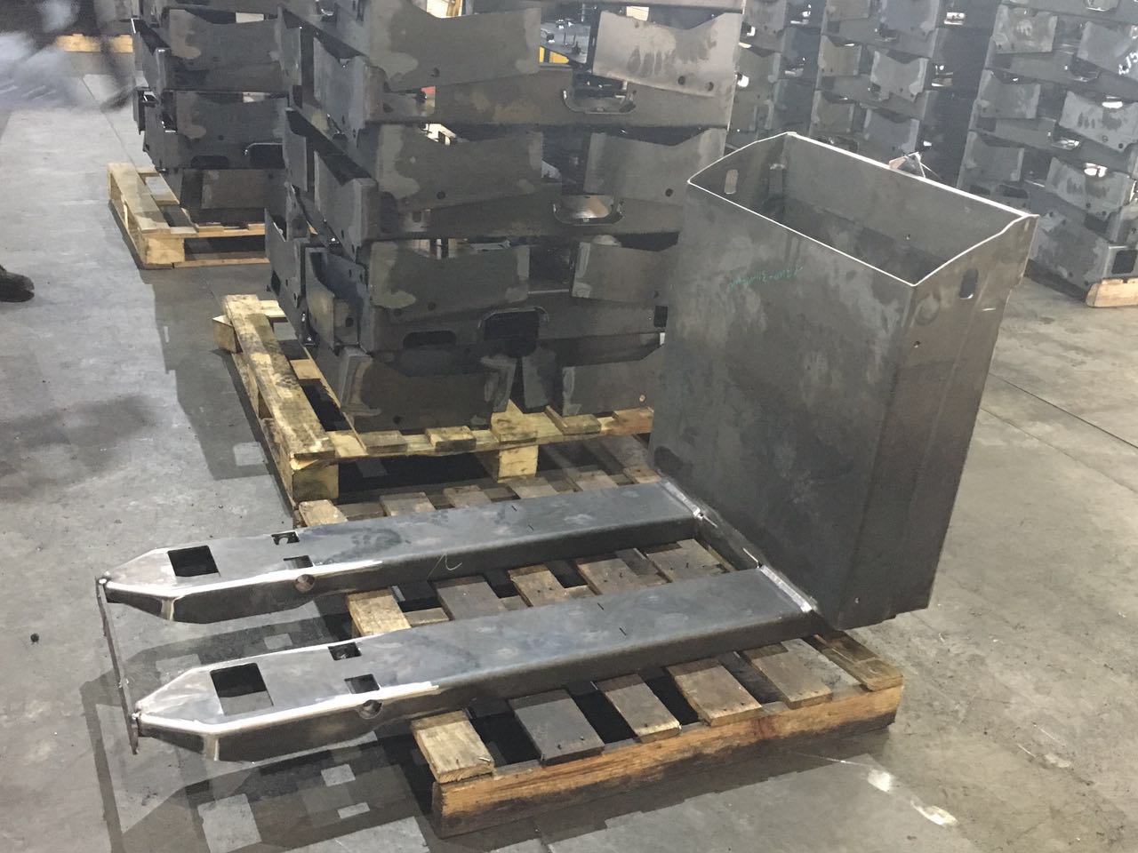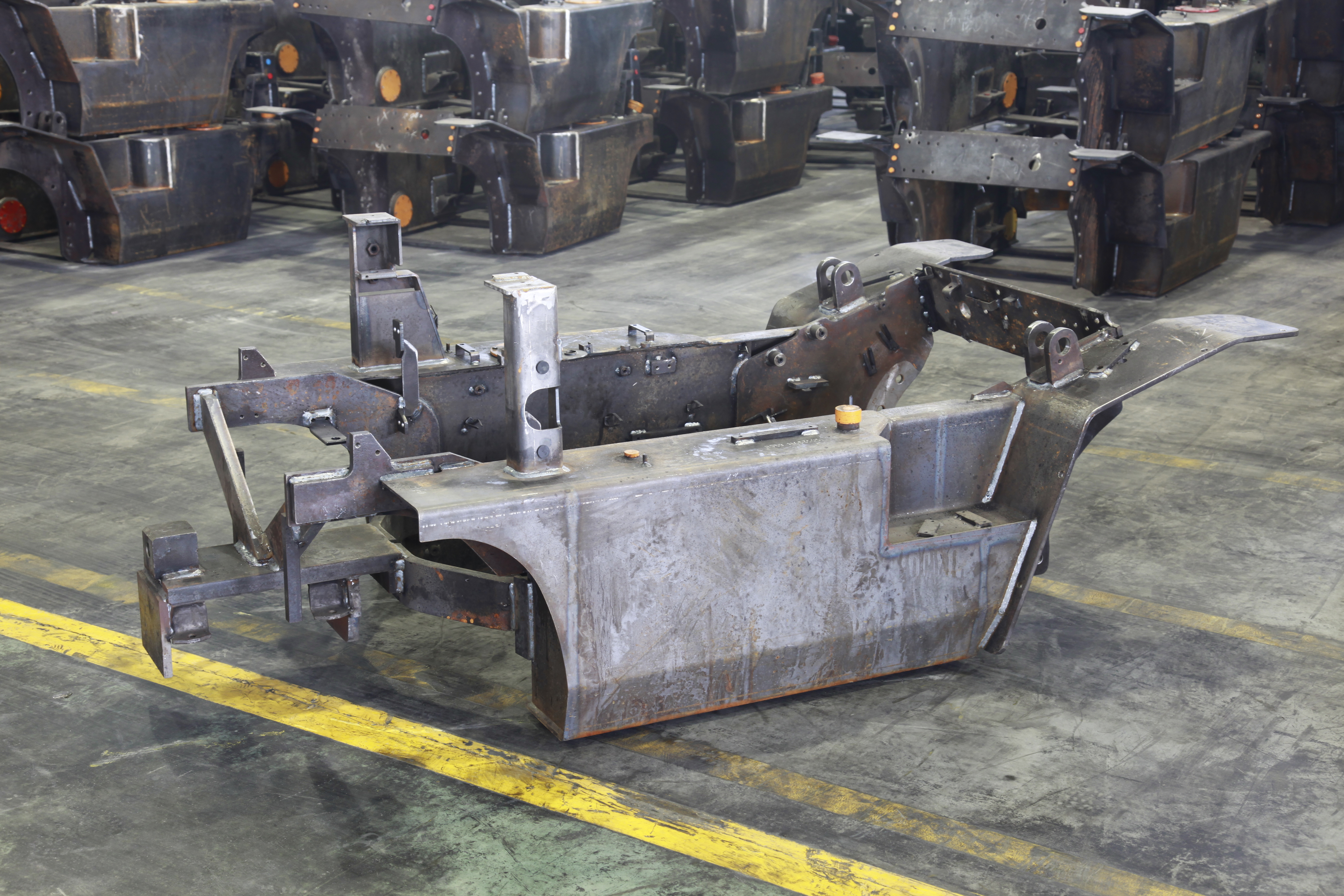 工程機械部件:以中厚板/型材的下料、成型、焊接和表面處理為主。目前我司配備了一條年產量20,000套車架的專業生產流水線,已為國內外知名叉車企業提供配套加工服務。