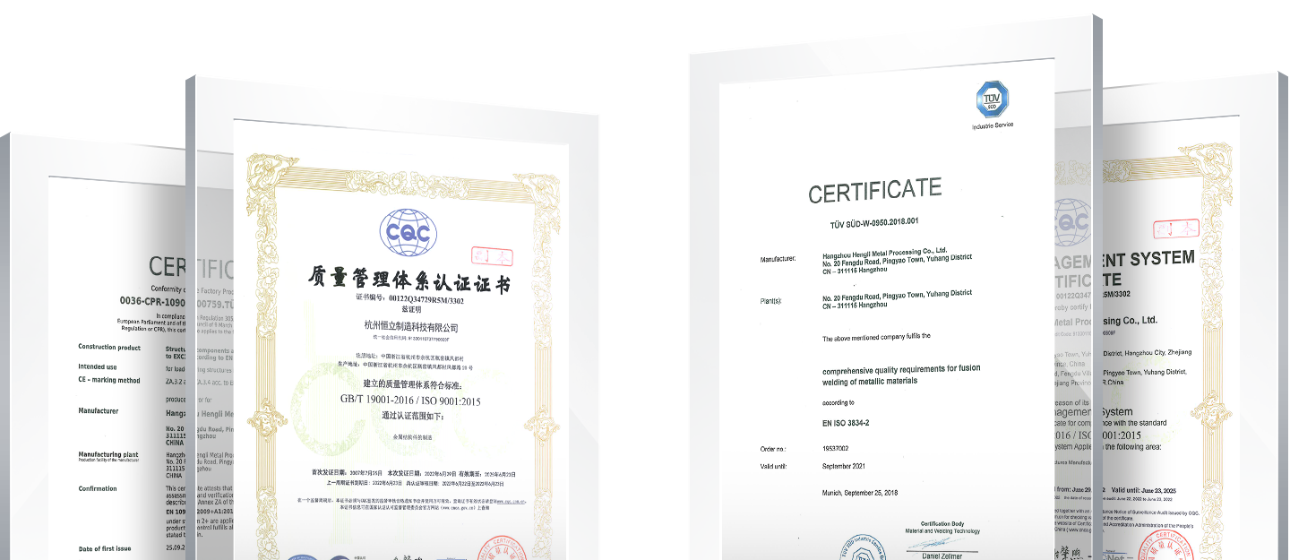 恒立制造榮獲多項(xiàng)質(zhì)量認(rèn)證,包括ISO 3834國際焊接質(zhì)量體系認(rèn)證;ISO 9001國際質(zhì)量管理體系認(rèn)證;EN-1090-1認(rèn)證